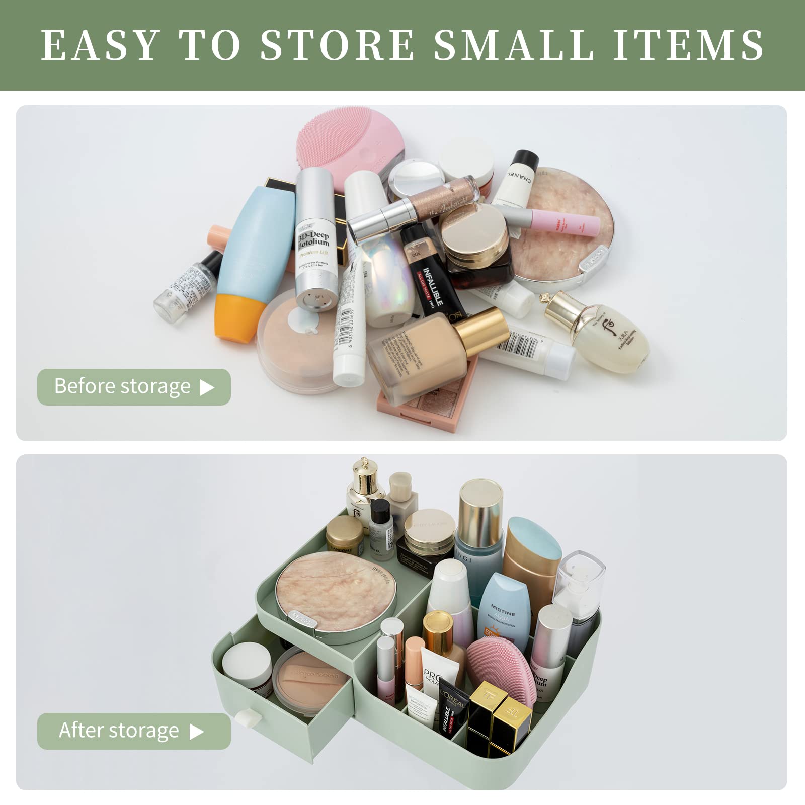 Abiudeng Makeup Organiser with Drawers – Multi-Compartment Storage (Sage Green)