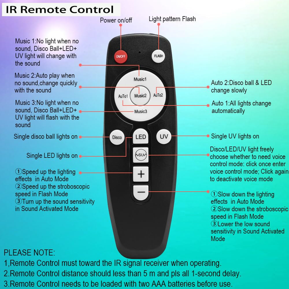 Disco Ball Party Light Sound Activated 6 Colour LED DJ Lamp w/ Remote
