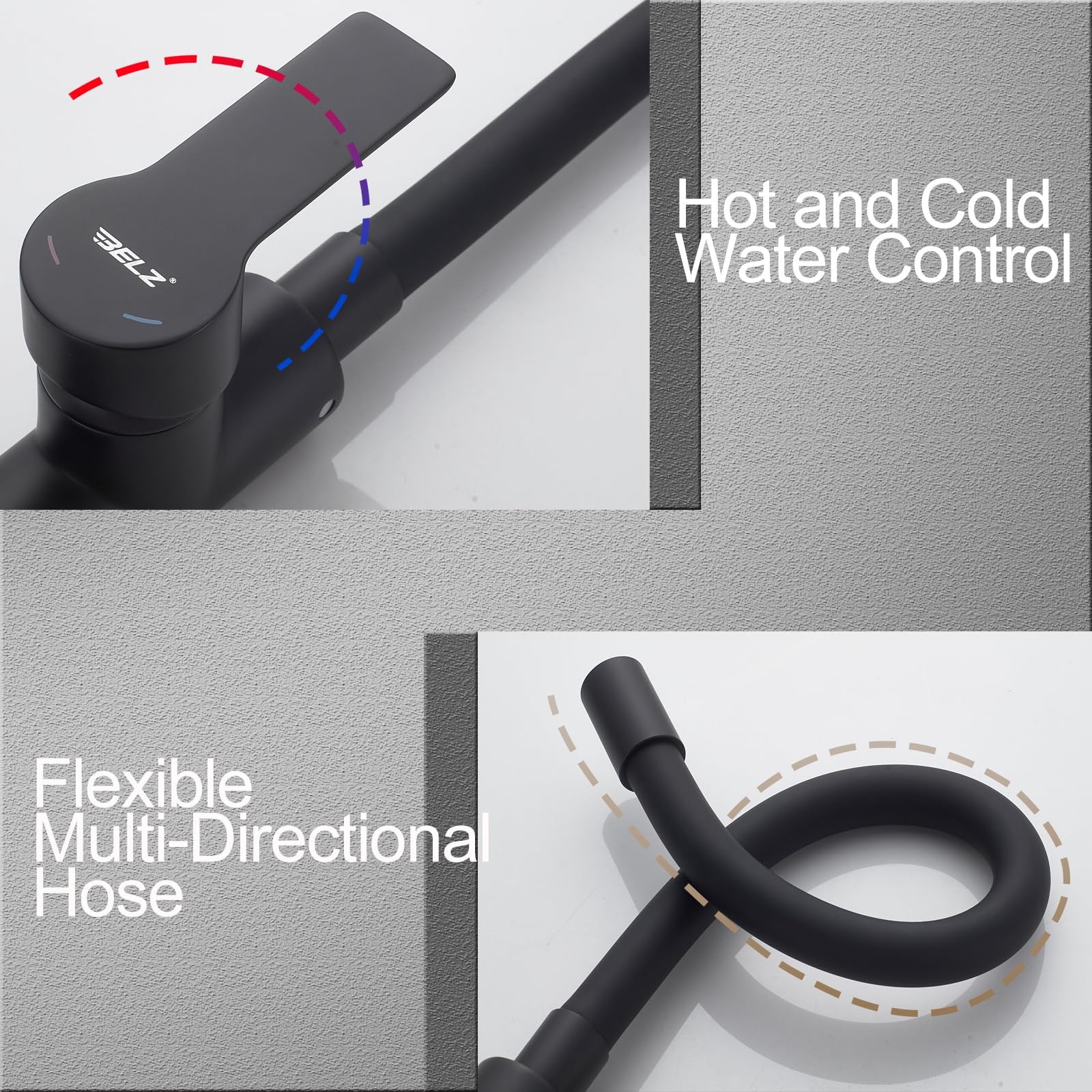 - Flexible silicone hose for easier rinsing and positioning