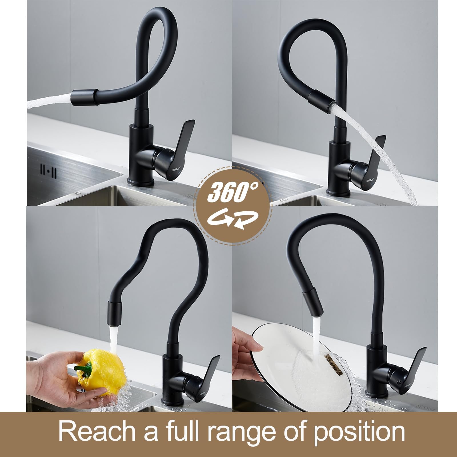 - 360° swivel design for full sink access