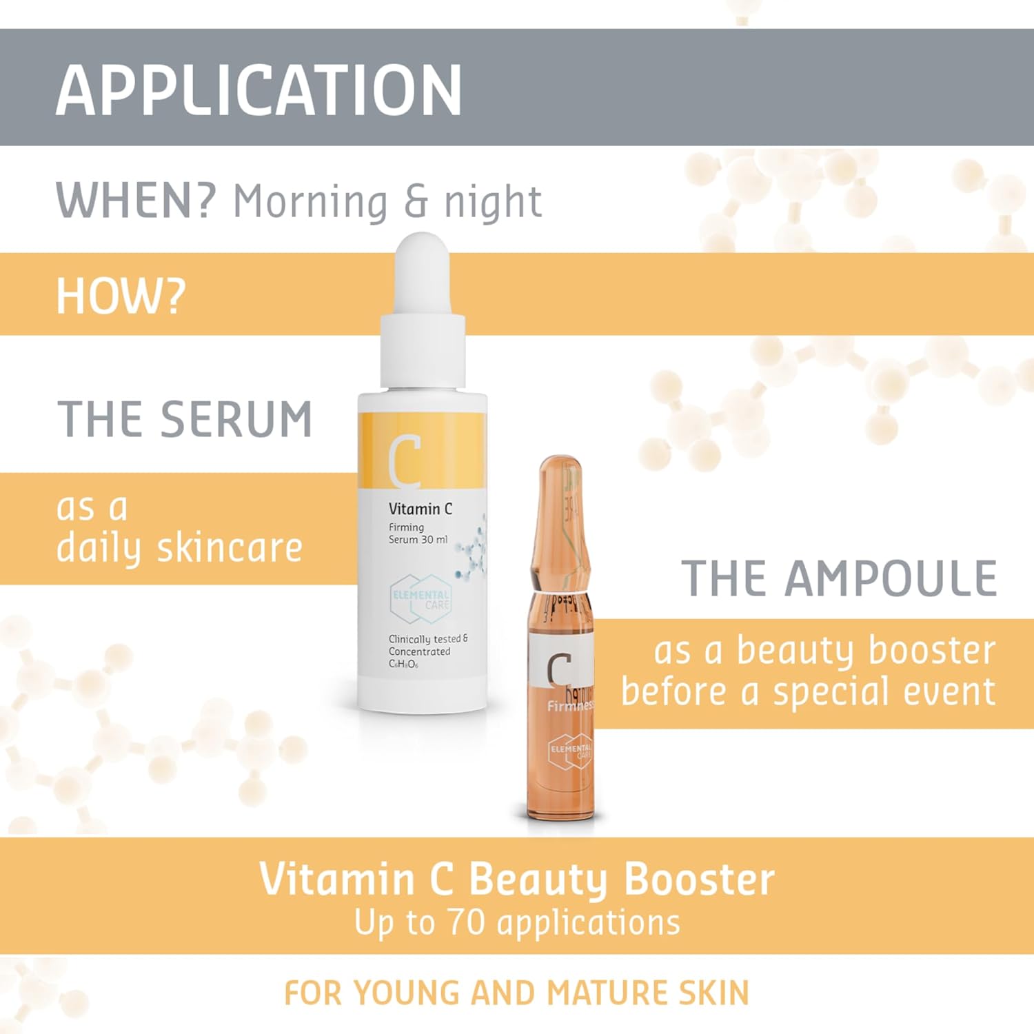 Elemental Care Vitamin C Serum & 5 Ampoules – Firming Treatment Set, Brightens Skin