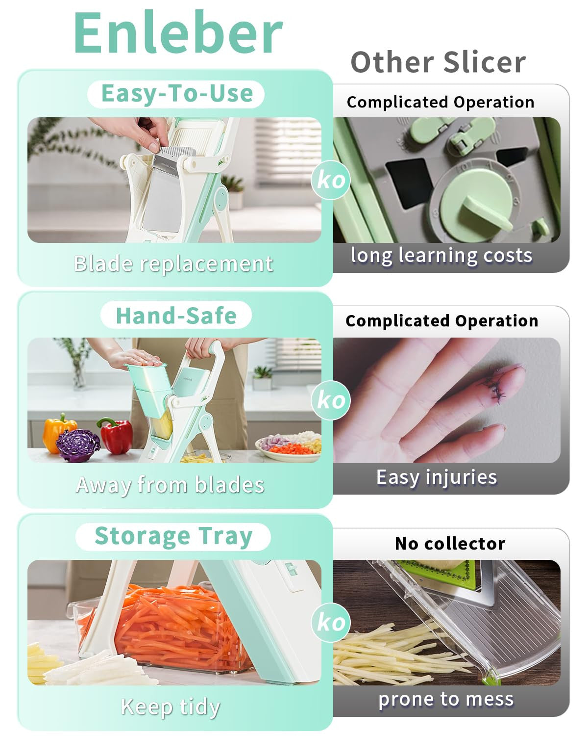 Enleber 6-in-1 Mandoline Slicer & Vegetable Chopper (White)