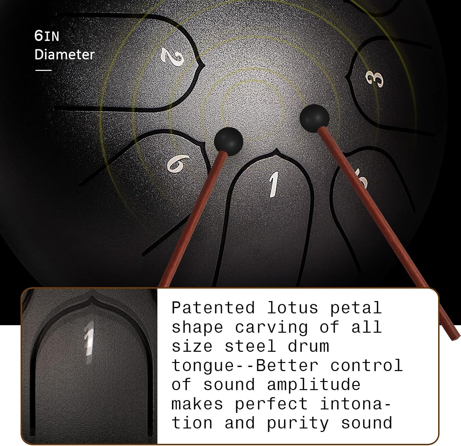 - Compact yet resonant 6‑inch steel body that delivers clear, rich tones without bulk — easy to hold, transport and store.