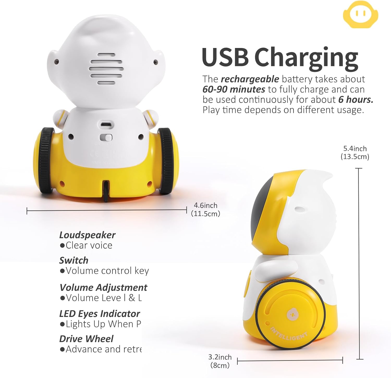 A fun interactive robot toy designed to keep kids entertained with movement, music and voice interaction. Great as a birthday or Christmas gift.