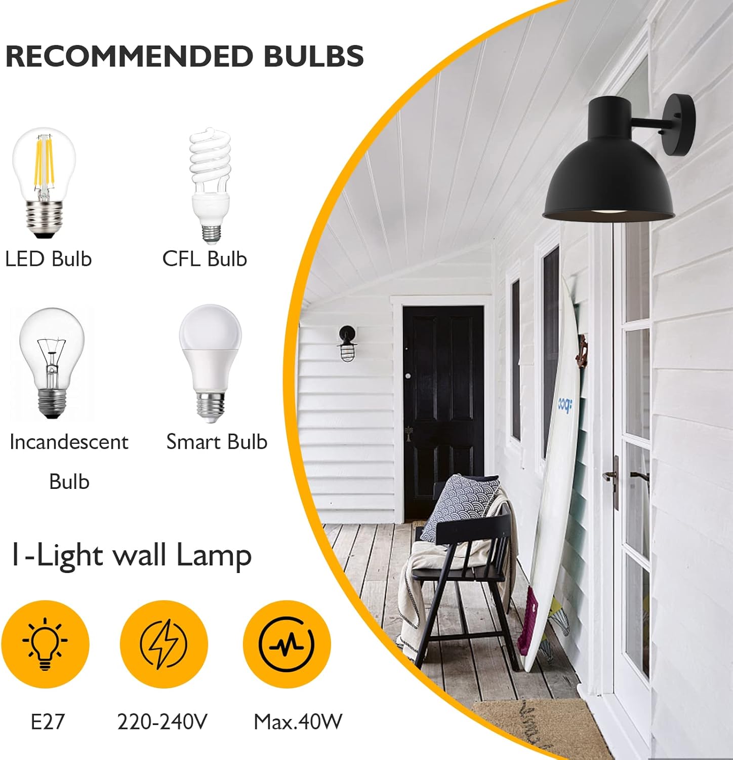 This outdoor wall light is ideal for homeowners, landlords, or those looking to boost their home’s exterior lighting with style and function. It suits anyone wanting to improve outside safety, enhance evening visibility, or upgrade the look of doorways, patios or gardens. To use, mount it securely to a suitable outdoor wall, connect to the mains supply (following local electrical codes), fit your preferred E27 bulb (LED recommended for efficiency), and enjoy long‑lasting, weather‑resistant lighting that adds both elegance and security to your home.