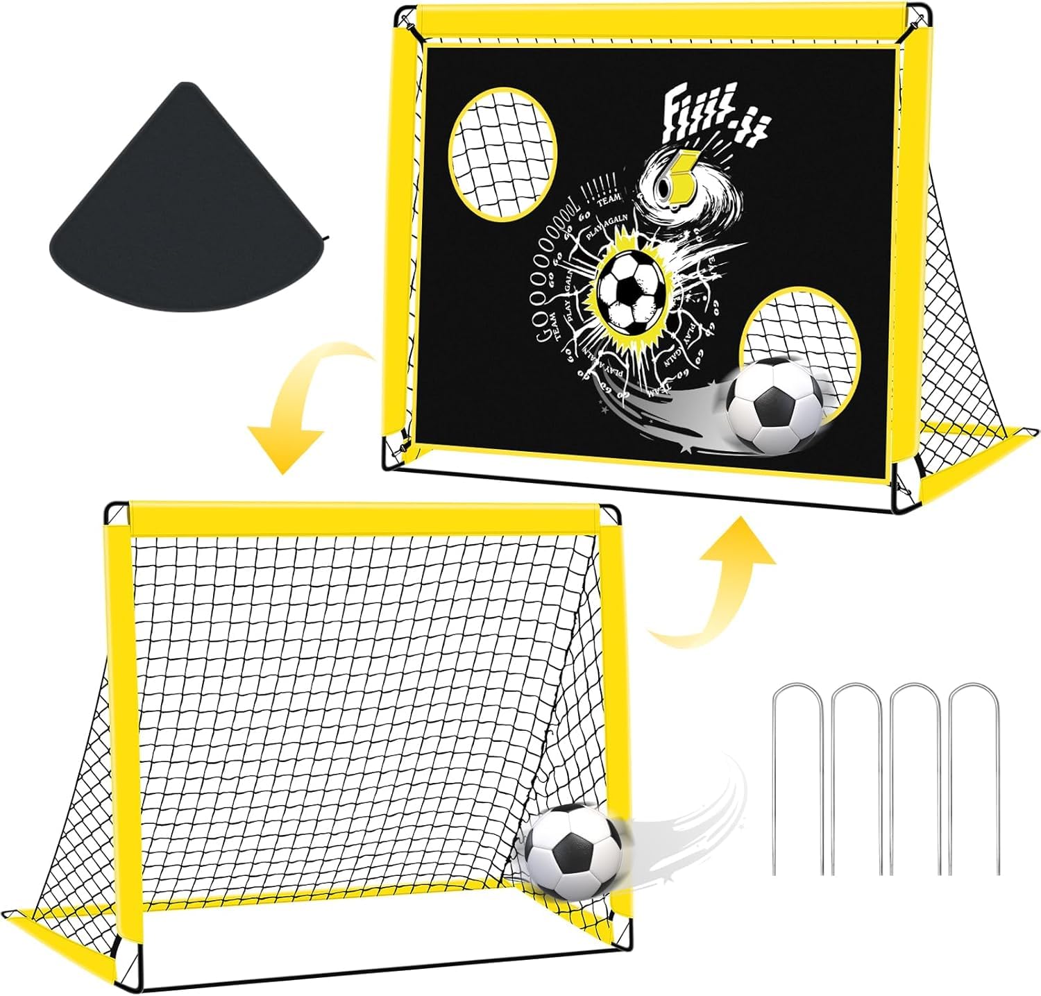 Portable 2-in-1 football goal net for kids’ training at home or in the park.
