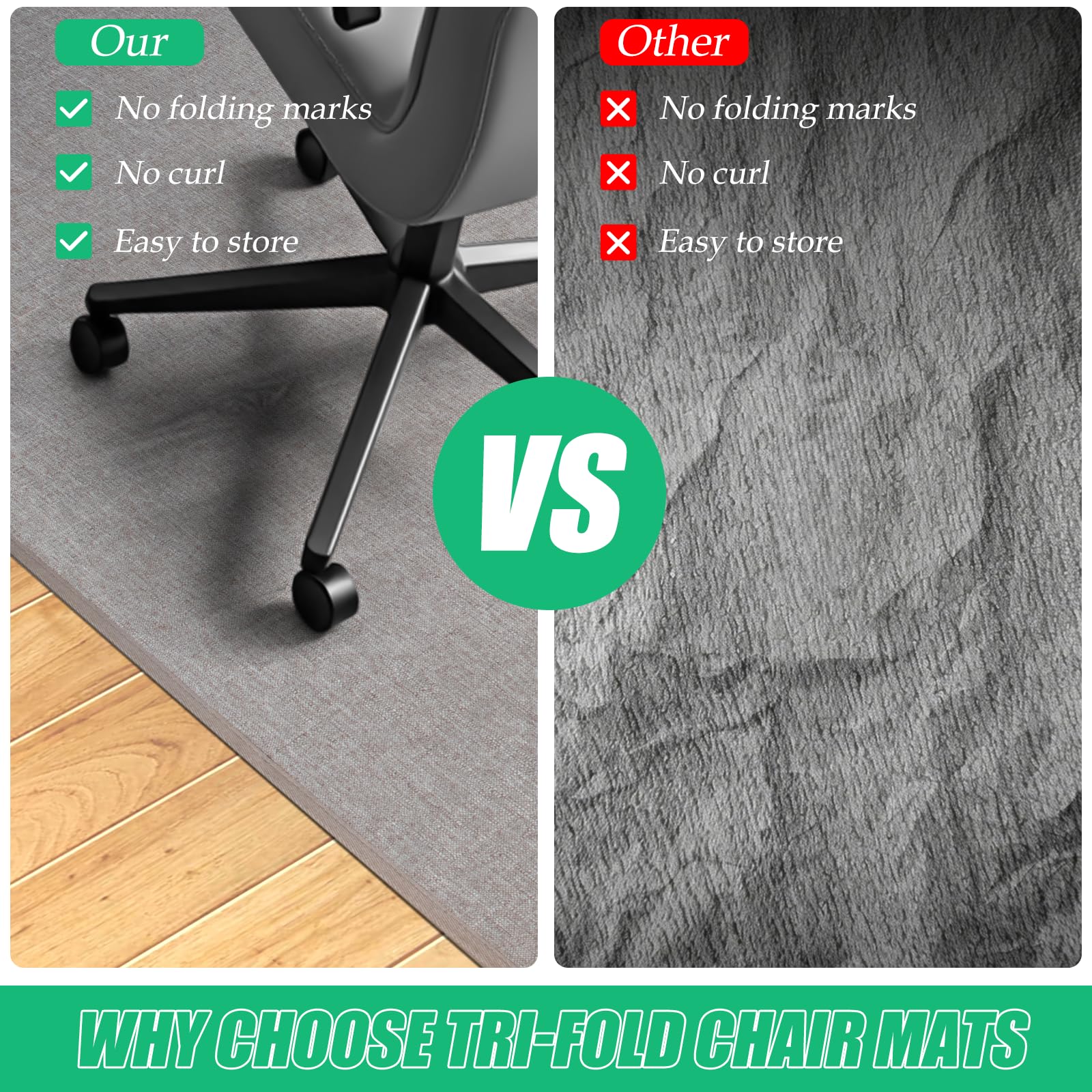 Kuyal Heavy Duty Office Chair Mat for Hardwood, Tri-Fold 36" x 48" (Light Grey)