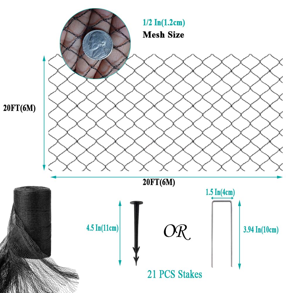 - Material: PE (polyethylene) referenced for the 20x30ft netting listing.
