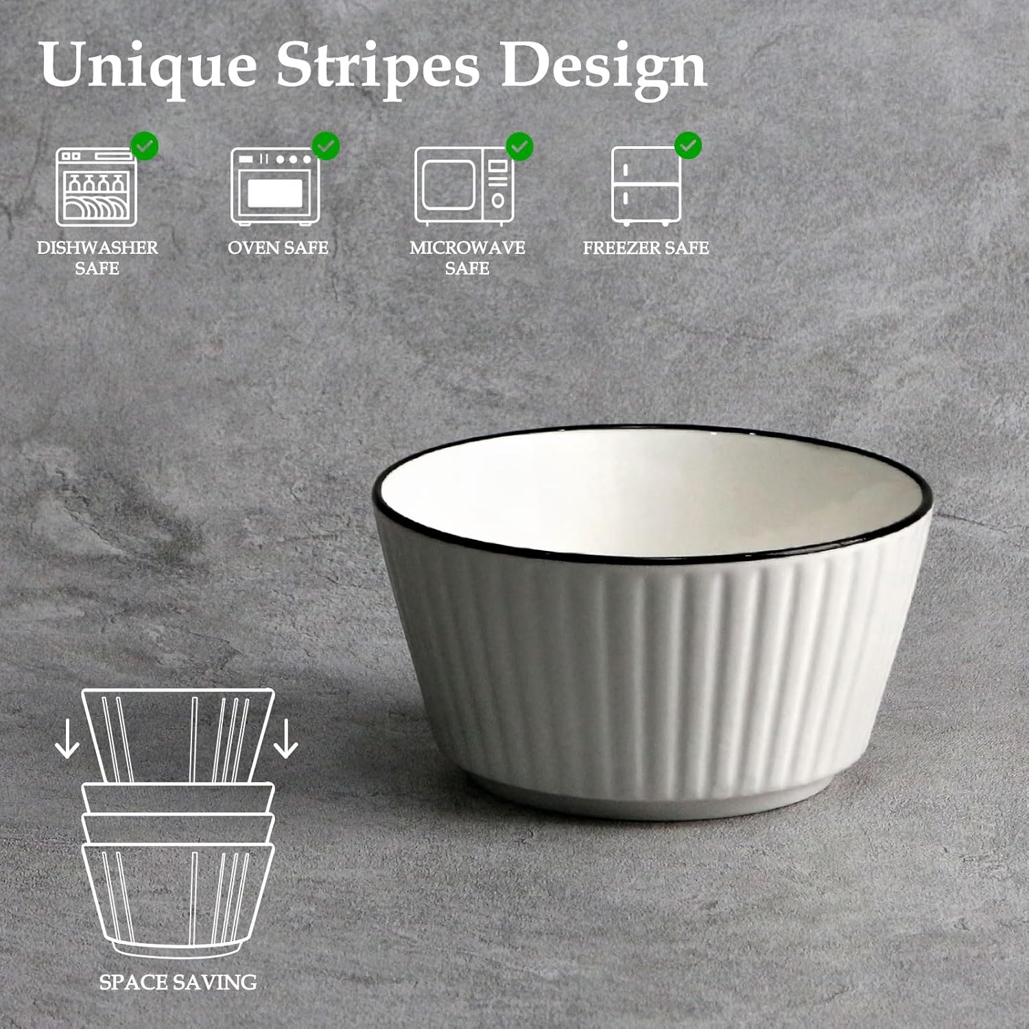 Set of 6 Ceramic Bowls 27 oz – Oven/Microwave/Freezer Safe, Stackable & Durable