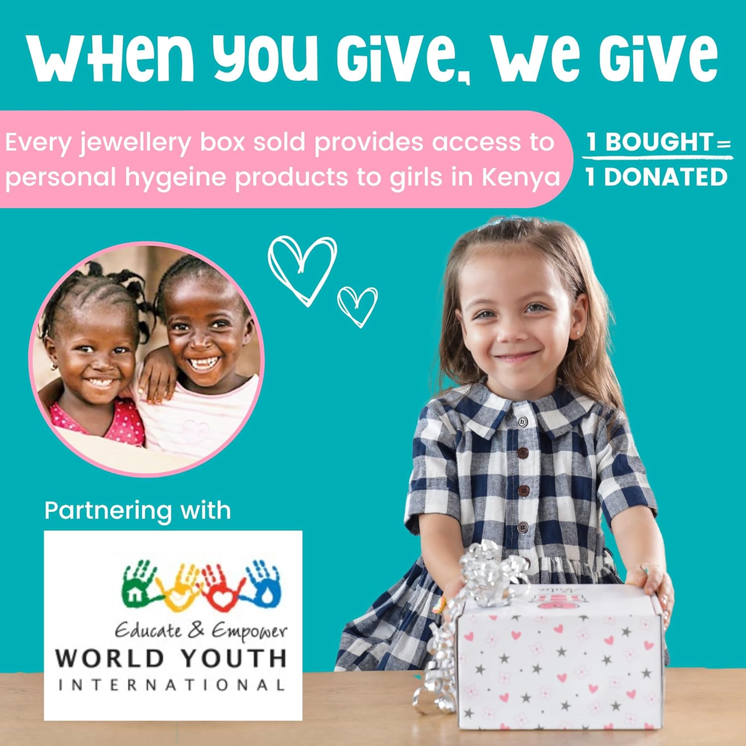 Pretty presentation & safe for children: gift-ready packaging, a pull-out drawer, mirror, and the jewellery is nickel- and lead-free — tested for kids’ safety.