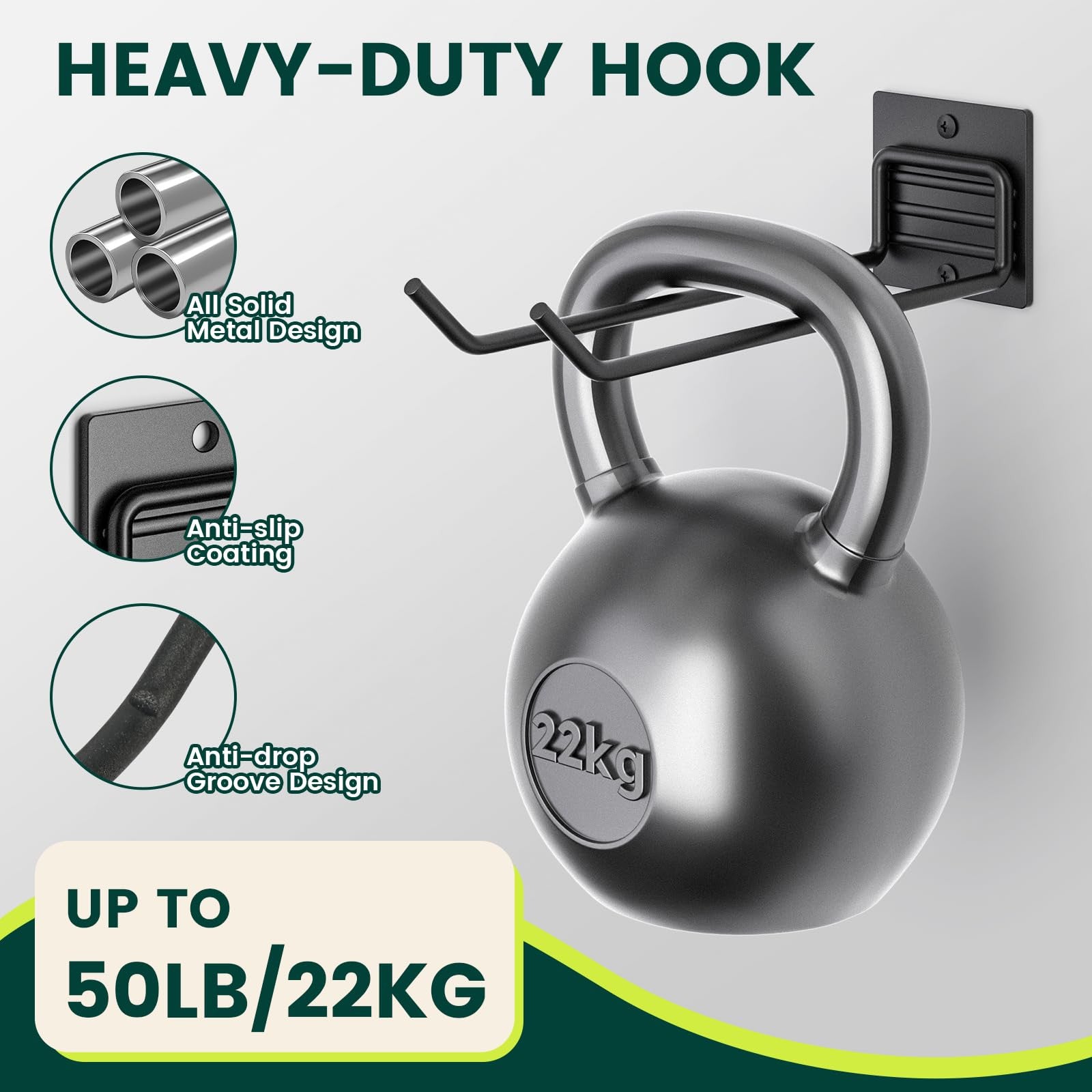 - Heavy-duty metal hooks with a space-saving wall-mounted design.