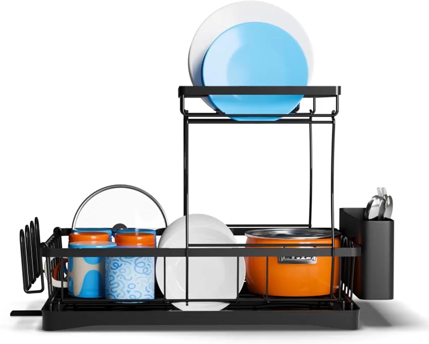 Generous two-tier layout: Doubles your drying capacity for plates, glasses, mugs, and utensils—perfect for busy households and maximising counter space.